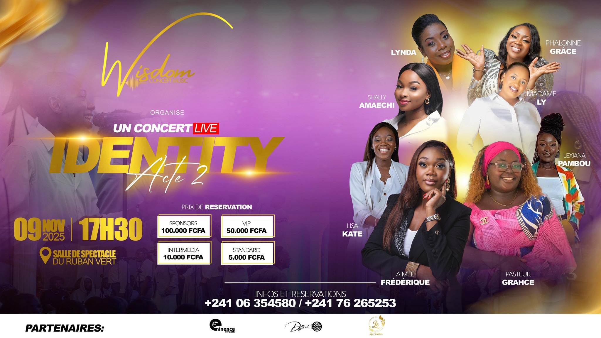 Plonge dans une atmosphère de musique vivante et de foi avec des artistes inspirants comme Lynda, Phalonne Grâce, Shailly Amaechi, Madame Ly, Lexiana Pambou, Lisa Kate, Aimée Frédérique et Pasteur Grahce.